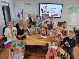 Активисты движения, под руководством советника по воспитанию Т.В. Хильчук, вместе с детьми из пришкольного лагеря провели интерактивную игру «Путешествие по России».