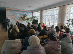 Перед весенними каникулами в школе состоялась встреча учащихся с сотрудниками ГИБДД и представителями районной службы профилактики.